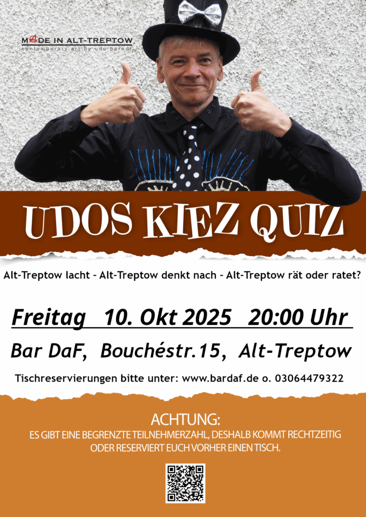 Nach der 65sten Folge auf dem wunderbar nachbarschaftlichen Baumscheibenfest freue ich mich darauf euch wieder bei Nico in der Bar DaF begrüßen zu dürfen.