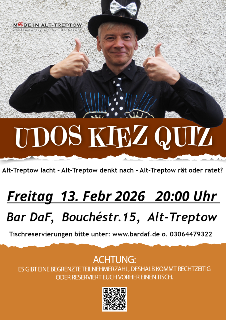 10 Feb. 2026 UdosKiezQuiz 70. Folge von Udo | Veröffentlicht in: Allgemein | 0 Puh, Winter ist hart und die Welt manchmal auch, bereiten wir uns einen schönen, warmen Abend, und feiern die 70ste Folge. Allen viel Spaß